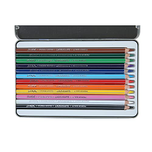 Doms Supersoft Non-Toxic Colour Pencil Set in Flat Tin Box (12 Assorted Shades)