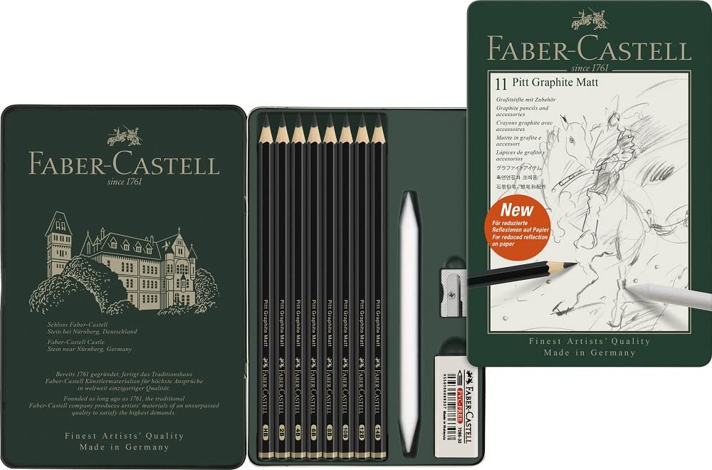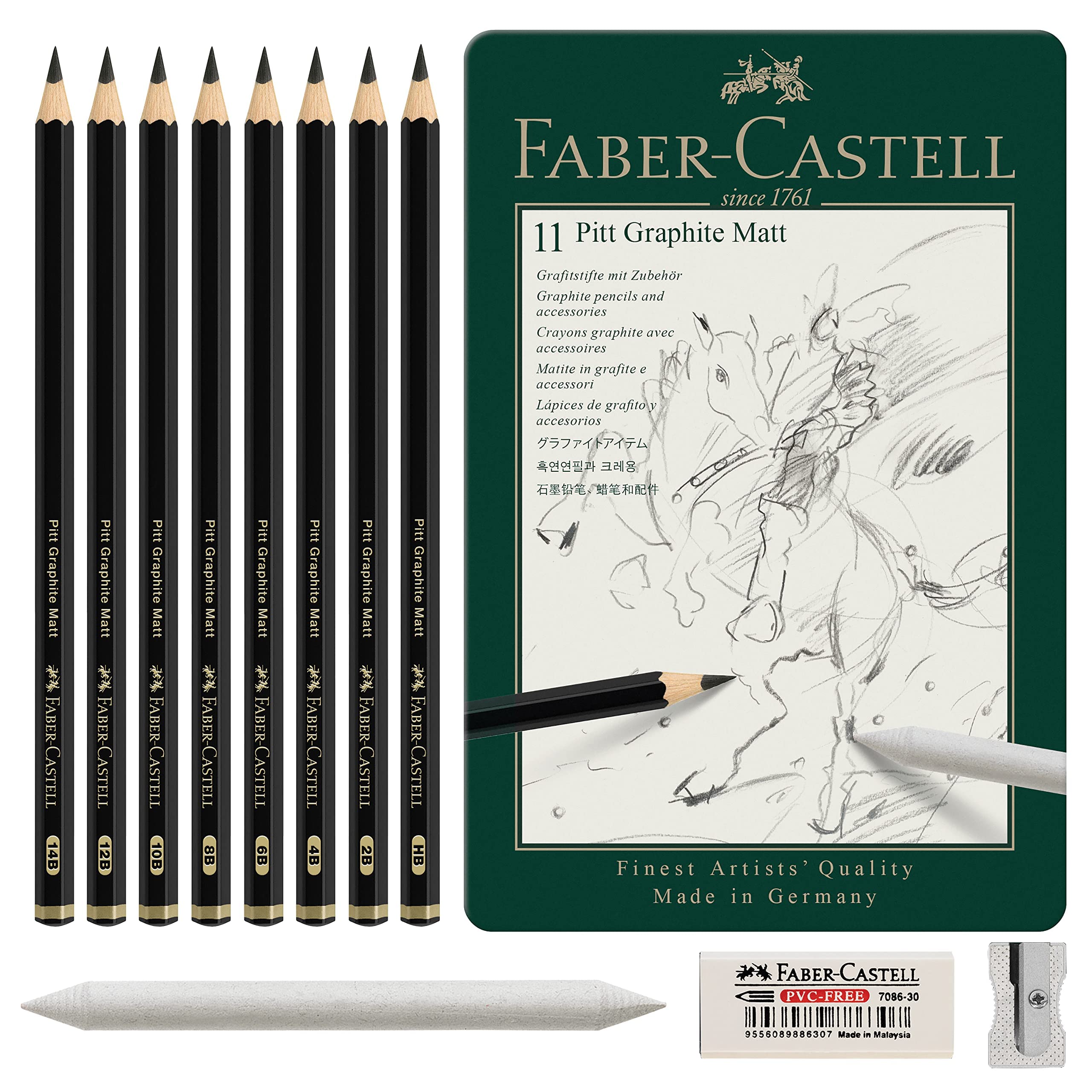 Content: 8 graphite pencils Pitt Graphite Matt in HB 2B 4B 6B 8B 10B 12B 14B 1 blending stump 1 eraser 1 single metal sharpener