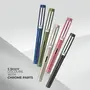 Flair Zoox A9 Ink-It Chrome Fountain Pen | Liquid Ink Technology & Iridium Tip | Minimalistic Design with Chrome Finish Clip | 3 Ink Cartridges & 1 Ink Converter | Blue Ink Pack of 4 - Color May Vary