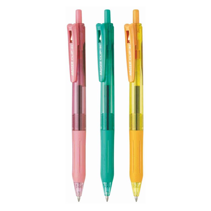 • Package Includes: Hauser Clip In Retractable Gel Pen Blue Ink Pack Of 3 - Body Color May Vary