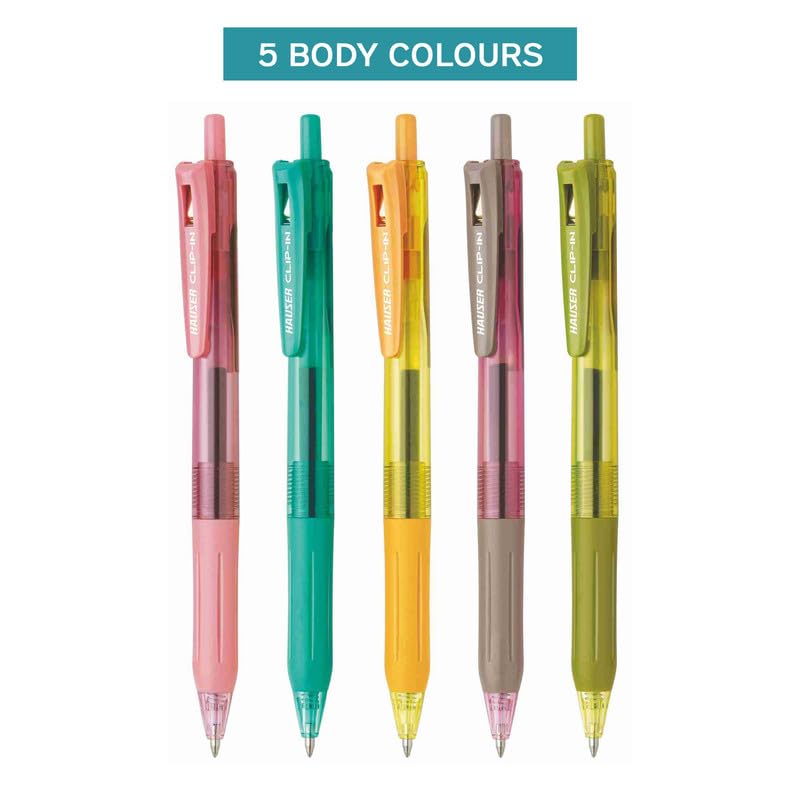 • Package Includes: Hauser Clip In Retractable Gel Pen Blue Ink Pack Of 6 - Body Color May Vary