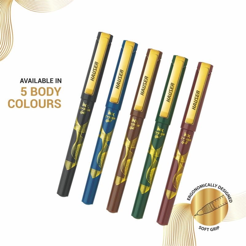 • Package Includes: Hauser Inx Cyber Gold Fountain Pen Blue Ink Pack Of 2 - Body Color May Vary