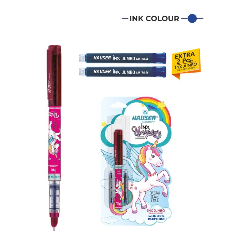 • Package Includes: Hauser Inx Unicorn Fountain Pen Blue Ink Pack of 8