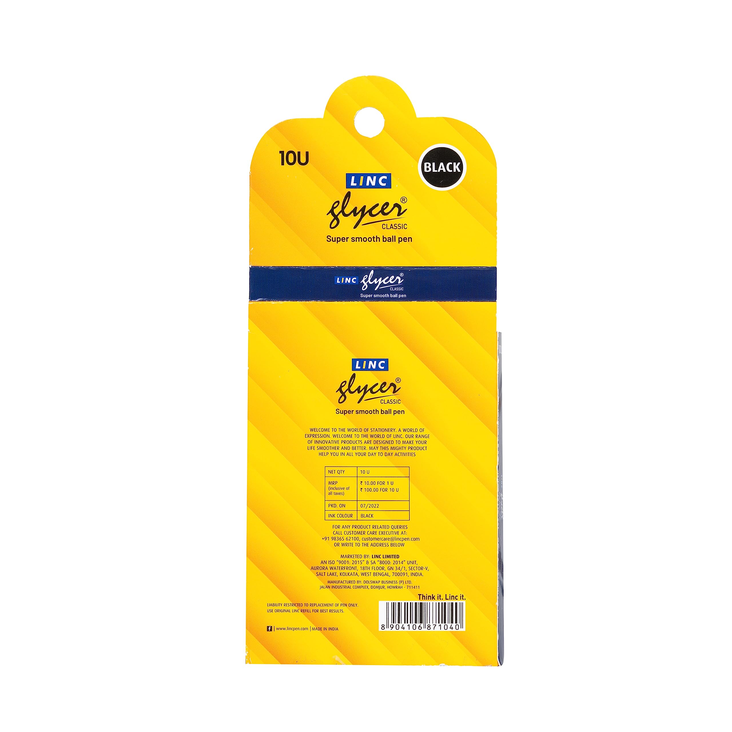Linc 0.6 mm Glycer Smooth Ball Pen | Black Ink | Set of 10