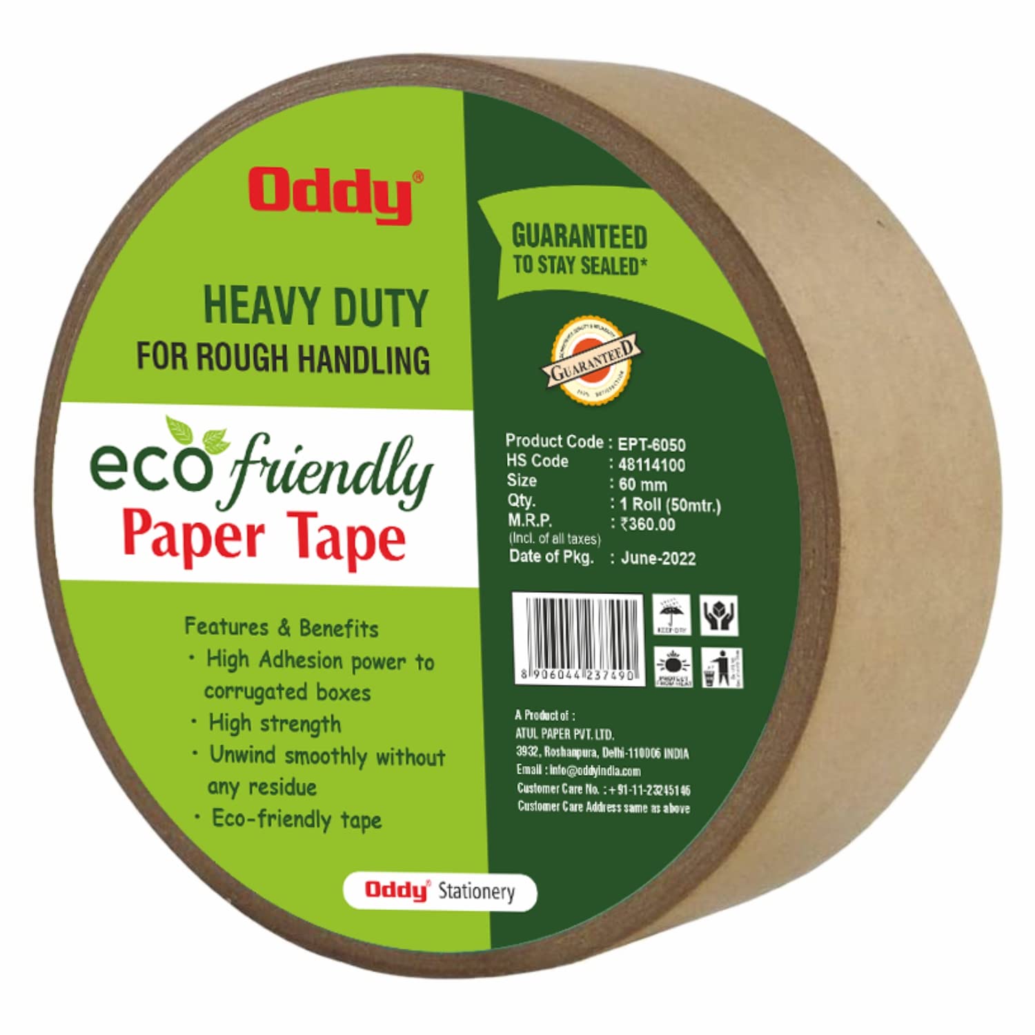 Great Substitute for Plastic Tapes: Oddy Brown kraft paper tape is a great substitute for regular plastic packing tapes while serving the same purpose and it is completely recyclable too! Works perfectly on Cardboard/Corrugated boxes: Oddy tape works perfectly on Cardboard/corrugated boxes as it is coated with very high quality adhesive and seals the boxes securely for transportation.