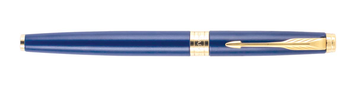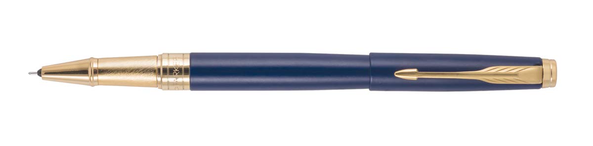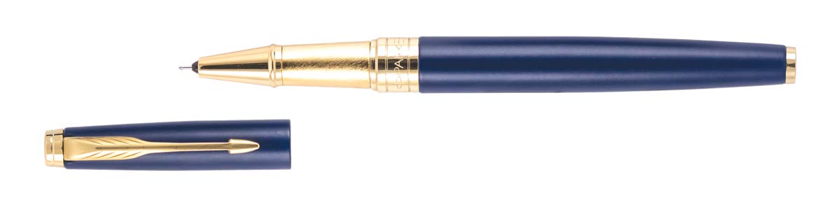 Parker aster roller ball pen with lacquered matte black finish metal barrel and chrome plated trim. A contemporary and unique design blended highlighted with a chrome plated ring on the barrel.