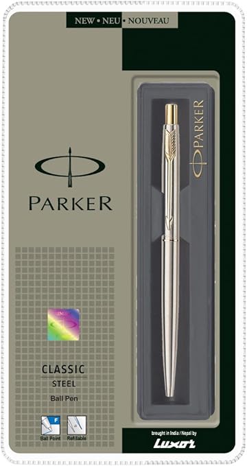 Parker Classic Stainless Steel Gold Trim Retractable Ballpoint Pen