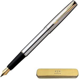 Parker - Frontier: Stainless Steel GT Fountain-Pen, Gold Trims, Gold Plated Fine Nib. by Parker
