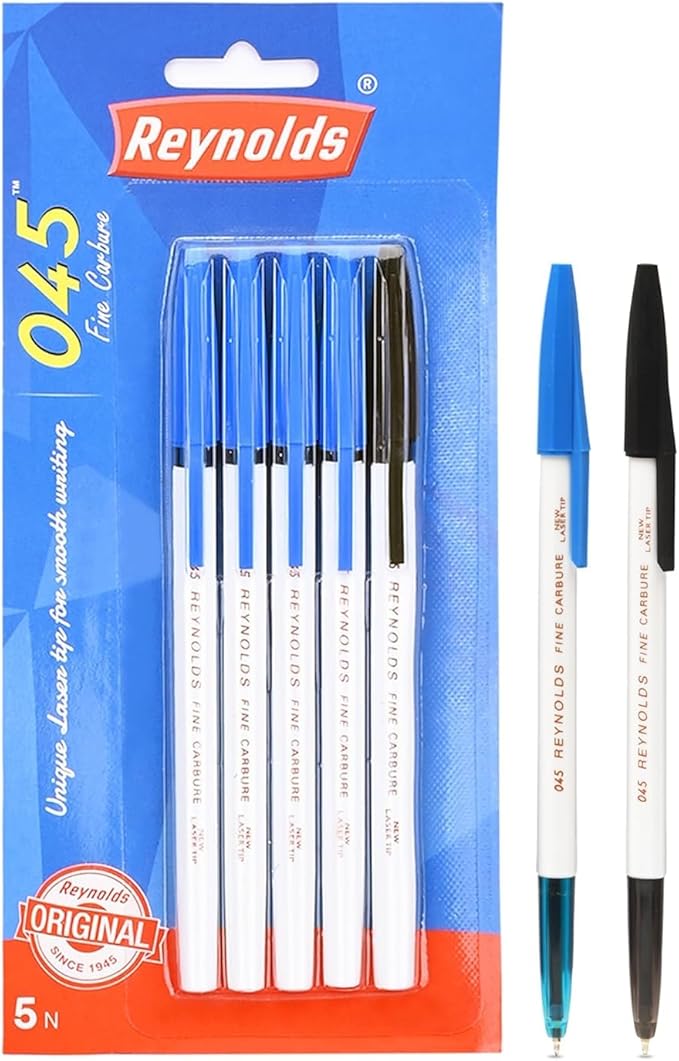 HomeOfficeStationary ProductReynolds 045 Ball Pen Set - 5 Pens (4 Blue 1 Black) | Comfortable Grip | For Students & Office Stationery | 0.7 mm Tip Size