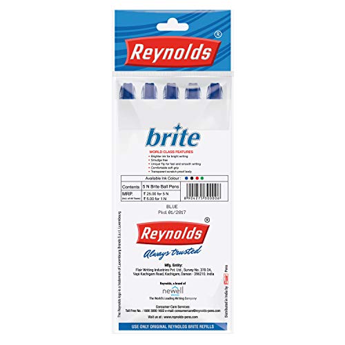 Reynolds Brite 0.7mm Fine Point Ball Pens - Pack of 40 Blue Ink (Ship From India)