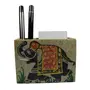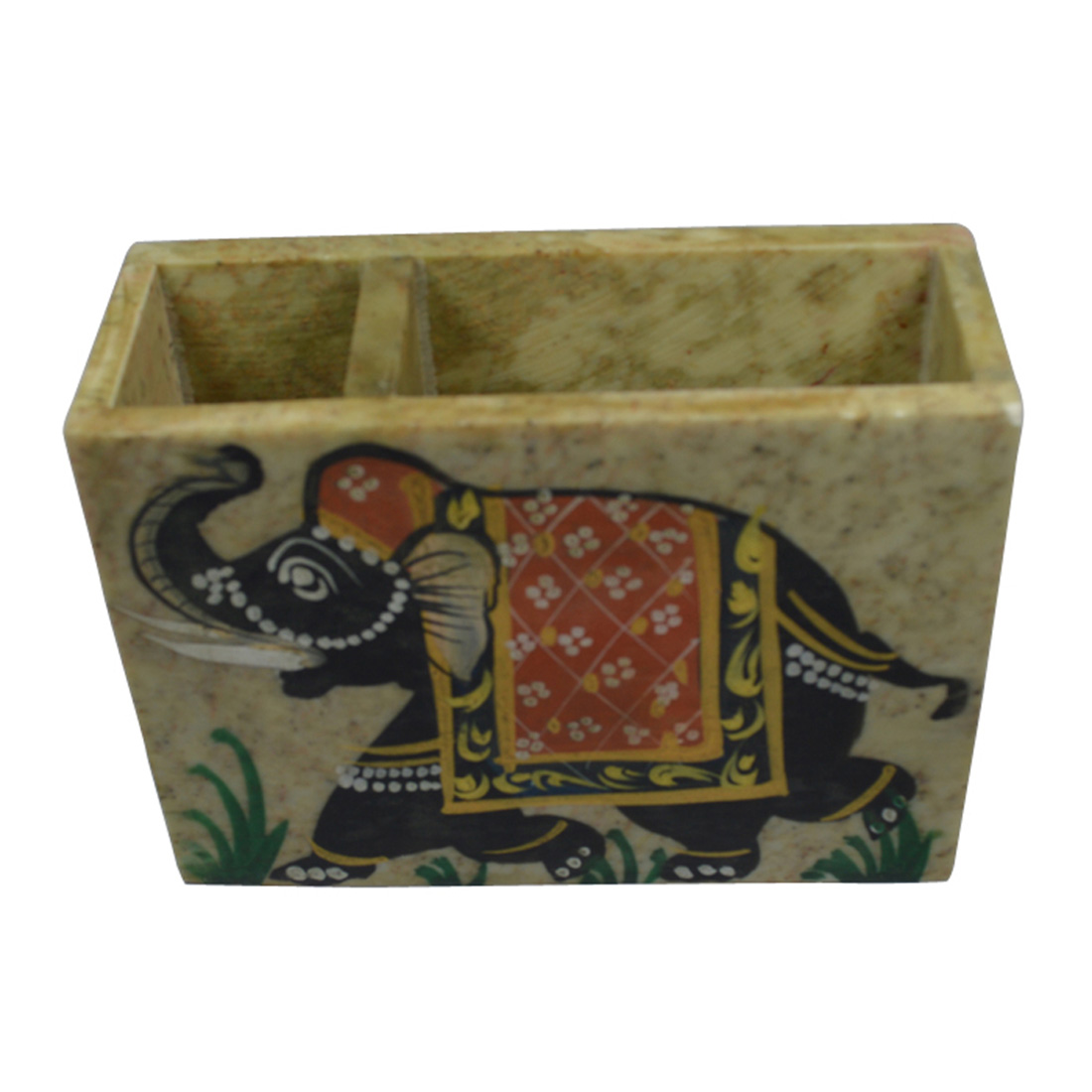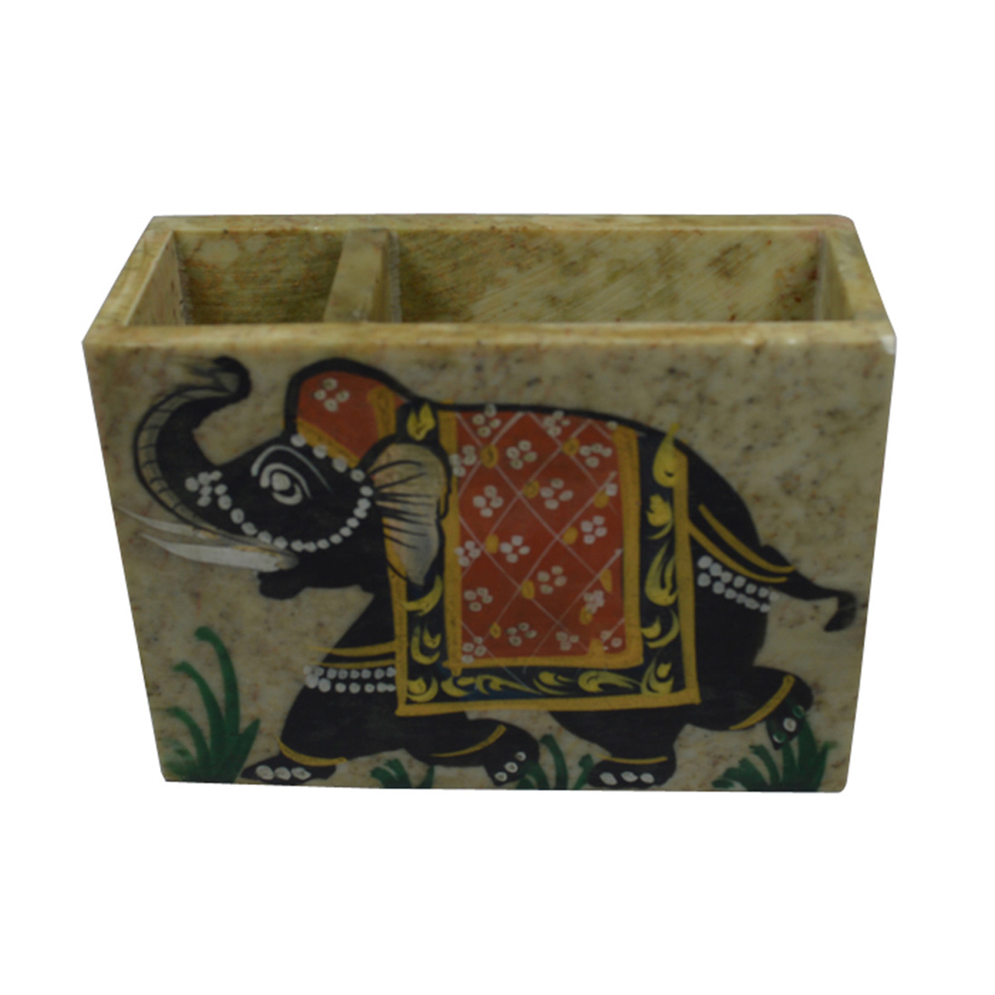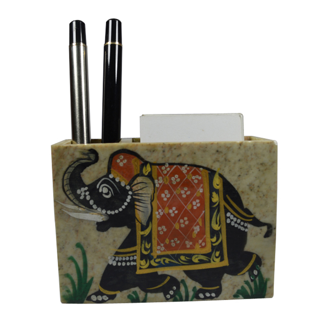 Silkrute Handcrafted Soapstone Card & Pen Stand With Elephant Painting