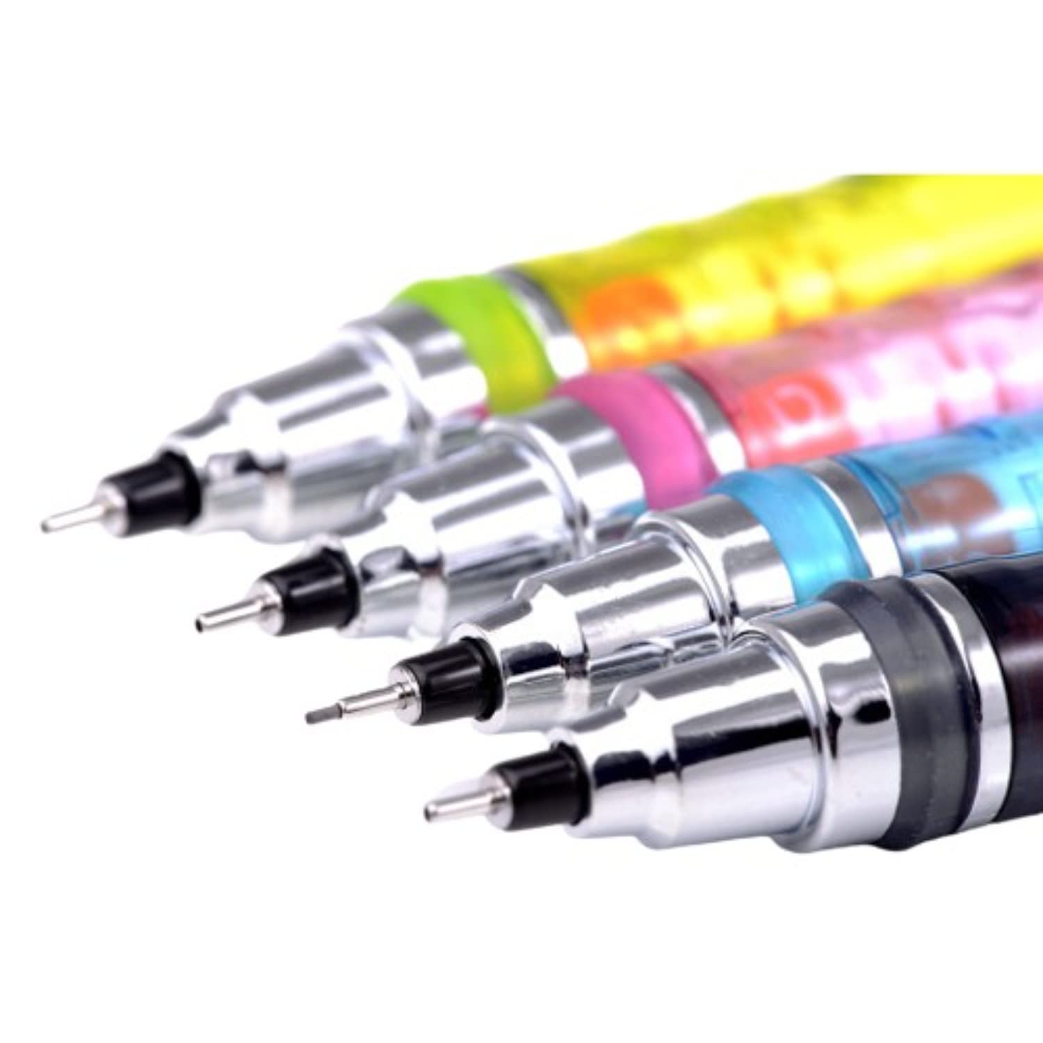 A Special mechanical pencil with gears inside that revolve as the pencil lead presses down and lifts off the paper. Each time you write the lead moves fractionally to maintain an even sharpness. The mechanical pencil with the revolving lead that STAYS SHARP. Revolving lead that stays sharp ! Does not break Easily 360 degree auto-rotating lead system.