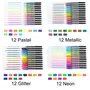 ONE SET FOUR STYLES: This art pen set contains 4 different pen styles: 12 Glitter 12 Neon 12 Gouache (Pastel) 12 Metallic.; USE ON BLACK PAPER: These multi-functional colouring pens work for various mediums and projects including black colored paper!.