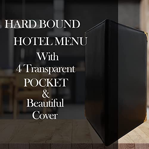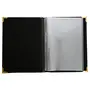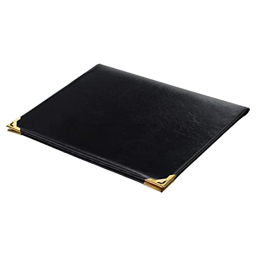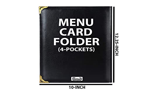 These 4 leaf menu covers are designed to hold (8) 8.5" X 11" entree lists and menu displays. Not only does this create a more professional and upscale appearance but it also makes updating a presentation incredibly easy. These black 4 leaf menu covers are constructed from synthetic rexine which gives off the appearance of high-end materials without the high cost. Due to the manmade materials used these hardcover menu holders can easily be wiped clean with a damp cloth in-between uses. Dimensions: overall: 12.25 X 10 inch. Media size: 8.5" X 11" number of compartments: 4.