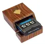 Specification Give yourself a brand new way to carry around your favourite playing cards with the Toolart handmade wooden playing cards storage box. It is made from a fine teak wood and finished naturally giving it a very natural untouched appeal. The four suits the clubs the hearts the diamonds and the spades are represented on the lid with a brass inlay of each symbol. This Handmade Indian Wooden Deck Playing Card Storage Box you can show off your sense of style and keep your decks of cards at the ready for shuffling and dealing. This handsome design is a must-have for any card player and makes a great box for poker players bridge players and anyone else who enjoys the fun of a game of cards. This Playing Card Storage Box is a wooden handicraft produced with traditional techniques by North Indian artisans. A great level of skill and attention to detail goes into the construction of the playing card storage box ensuring that it is of impressive quality and built to last a lifetime. The box is fashioned out of Indian hardwood making it light in weight but maximally durable. On the lid symbols are inlaid into the wood to show the purpose of the box and add distinction to its design. Not only is this Handmade Indian Deck Playing Card Storage Box well crafted and incredibly attractive but it's also a very practical design. The box is large enough to hold two full decks of cards and has a divider down the middle to keep the decks neatly stowed away.