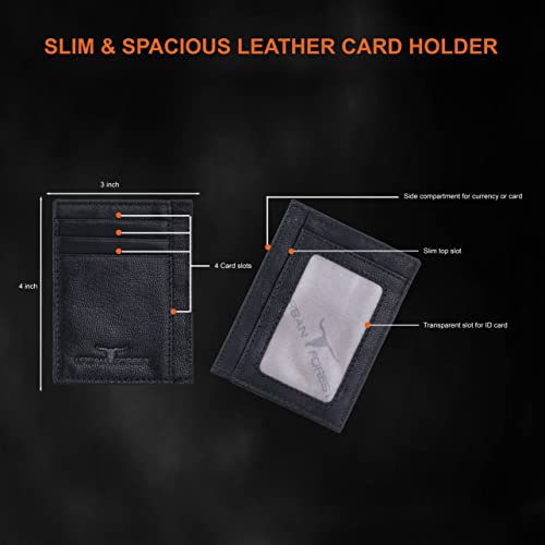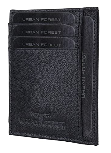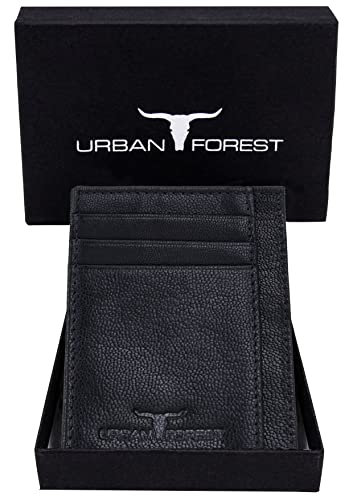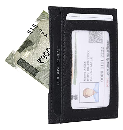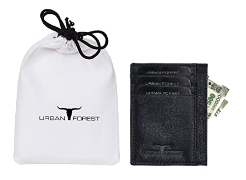 URBAN FOREST Chris Leather Card Holder for Men, Black, Minimalist