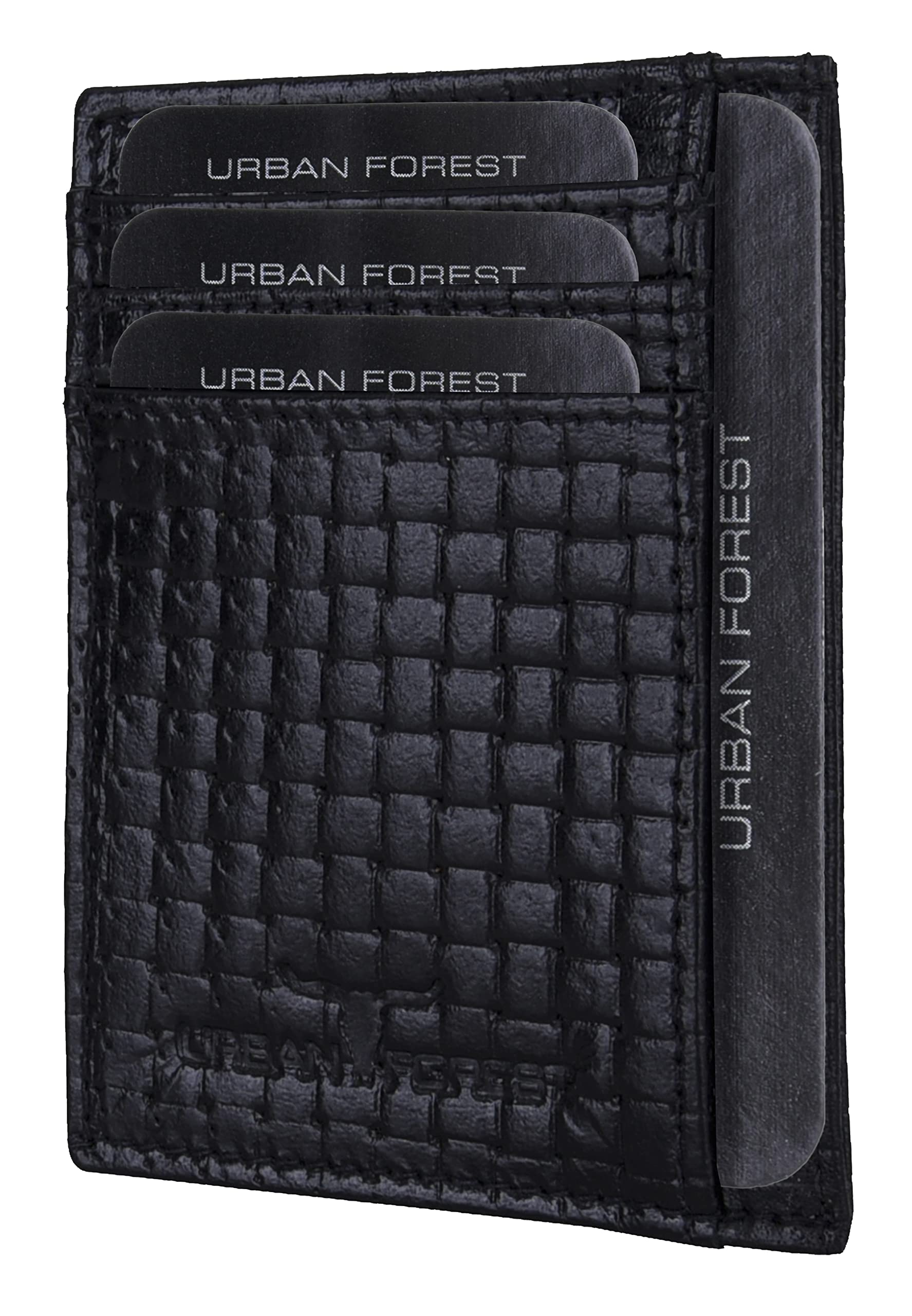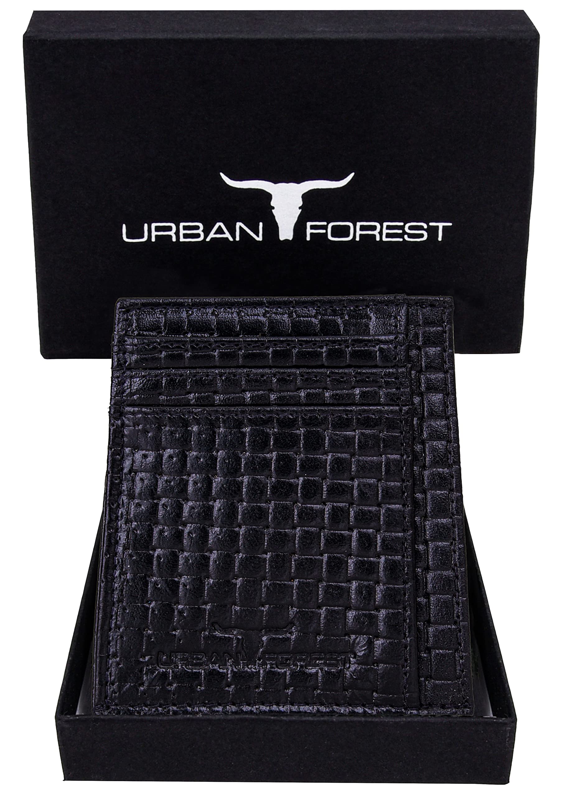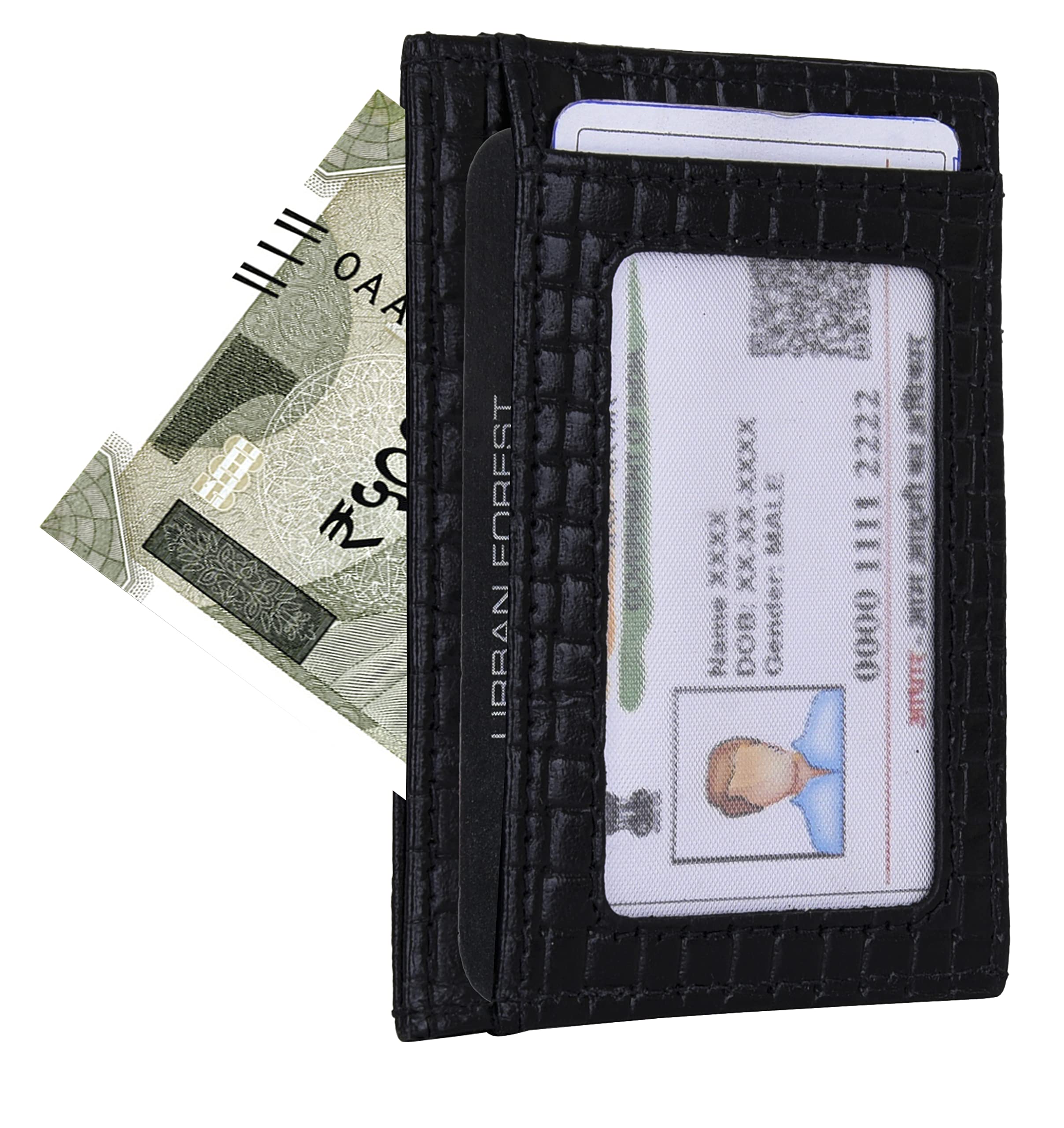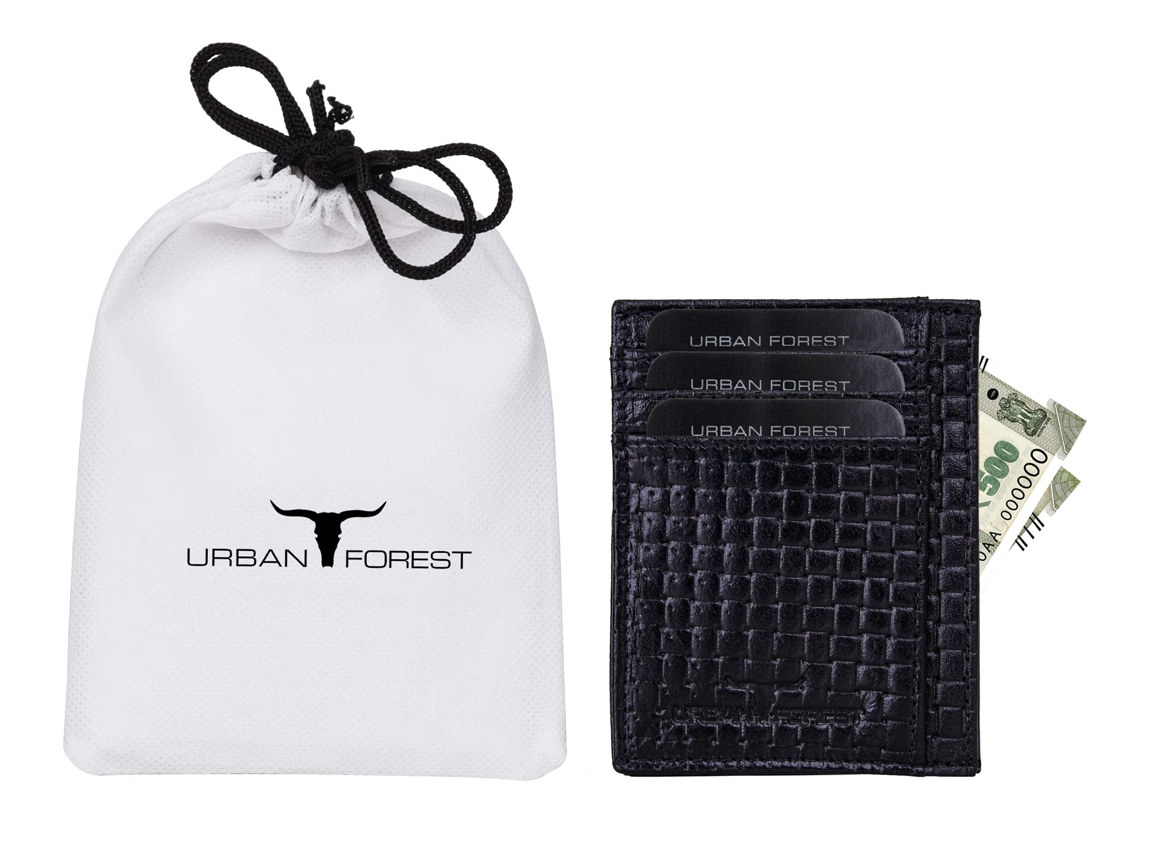 URBAN FOREST Printed Black Chris Leather Credit Card Holder for Men