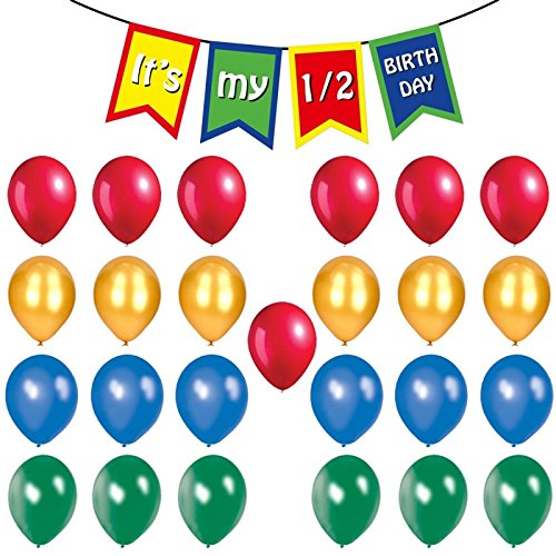Theme My Party 1/2 Year Banner with Multicolor Balloon