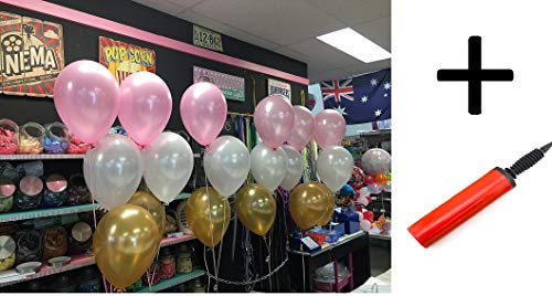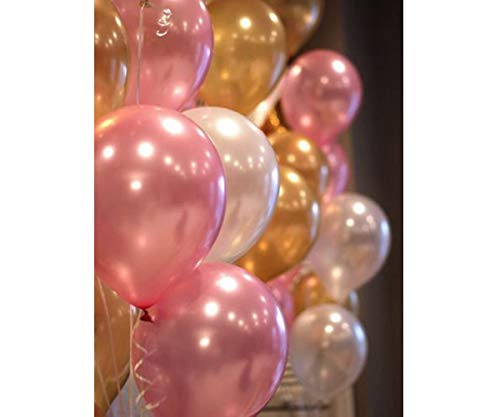 Color:Pink Gold And WhiteMetallic Finish Latex balloons are beautiful and fun addition to any party. No party would seem complete without balloons to play around with. Balloons are not just for KDs parties they can be used anywhere anytime and for any occasion you wish to celebrate. Whether it is a party in the office a Christmas bash a Small shower wedding or a casual party for friends balloons seem to be an essential of party supplies. Along with buntings balloons are the most favoured decorations for any occasion. With Amfin party balloons you can be sure that your party will always be colourful and fun