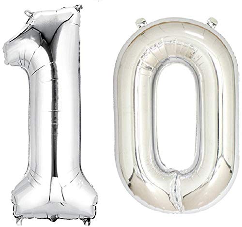 16" Special Numbers foil Balloons (Pack of 2) (10 No. Silver) for Special Occasions Supplies