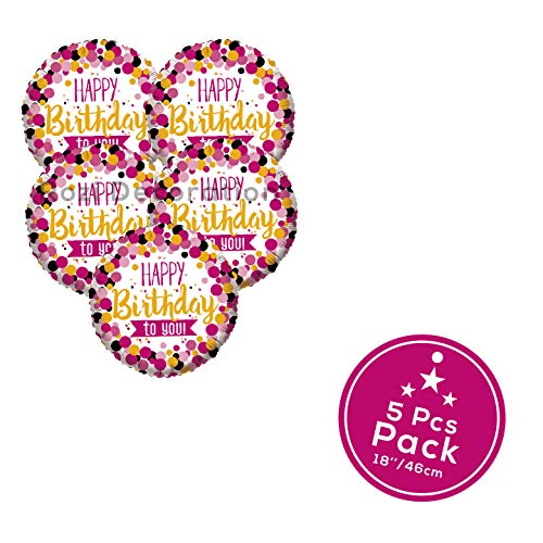 Rozi Decoration 18" inches Round Shape Happy Birthday Party Decorative Foil Balloon - Pack of 5 Pcs (11101)