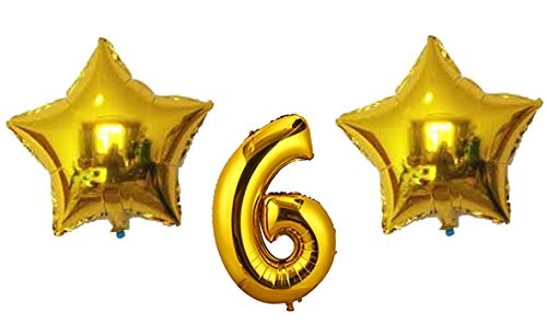 Evisha 1 pcs Number Foil Balloons and 2 pcs Star Golden Foil Balloons (Set of 3 Balloons) Size : 16" (6-Stars)