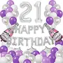 21ST Purple Silver Decoration KIT :21 Number FOIL Balloons Happy Brthday Banner with 47PCS Latex and FOIL Balloons