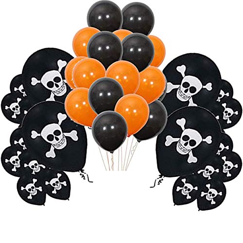 Masti Zone 25 Pcs Black Halloween Skul Printed PIRATE Balloons with (25 Black 25 Orange) Halloween Scary Theme Balloons (Black Orange Balloon With Skul Printed)