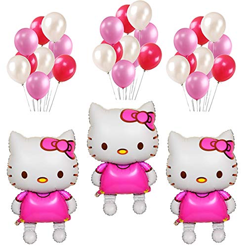 3 Pcs Cartoon Character Hello Kitty Foil Balloons with 60 Red Pink White Balloons
