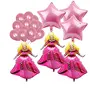 3 Pcs Cartoon Character Princess Foil Balloons with 3 Pcs Pink Star Foil Balloon and 50 Pink Metalli