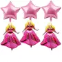 Masti Zone 3 Pcs Cartoon Character Princess Foil Balloons with 3 Pcs Pink Star for Girls Kids Birthday Theme Parties