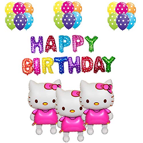 Masti Zone 3 Pcs Hello Kitty Foil Balloons With 1 Pcs Happy Birthday Foil and 25 Polka Dot Balloons For Girls Birthday and Baby Shower Hello Kitty Theme Part Supplies (Hello Kitty Theme 10)