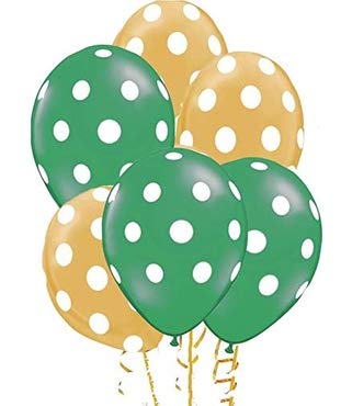 Evisha 30 pcs Golden and Green Big Size Polka Dot Balloons