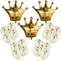 Include:3Pcs aluminum foil crown balloons and 20Pcs gold confetti balloons.