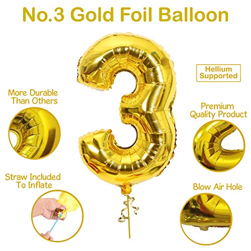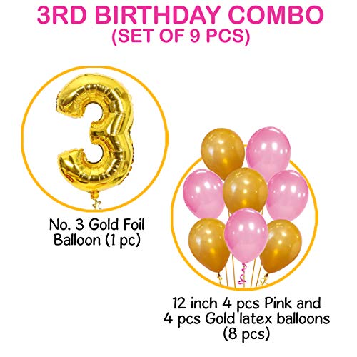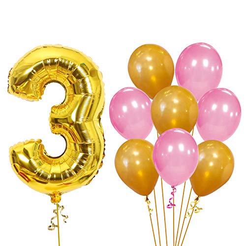 Color:Number 3 | Size:Set of 9Package include 1pc number three golden foil balloon 4pcs pink and 4pcs gold latex balloon. High Quality party supplies set for all of the ages. These balloons are good combinations to have a convenient yet impressive party decoration for everyone. Number 1 foil balloon high Quality Foil Balloon is thickened It can be used repeatedly automatic sealing. Please be gentle and careful when inflate the balloons not too much air and dont be too fast especially using a pump. Do not put the decorations close to the fire.
