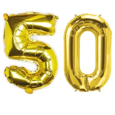 Evisha Number Golden Foil Balloons Set Size 16" (50)