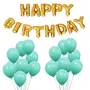 Evisha 50 pcs Mint Green Pastel Colour 12" Balloons and 13 Letter 16" Golden Happy Birthday Aluminium Foil Balloons