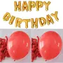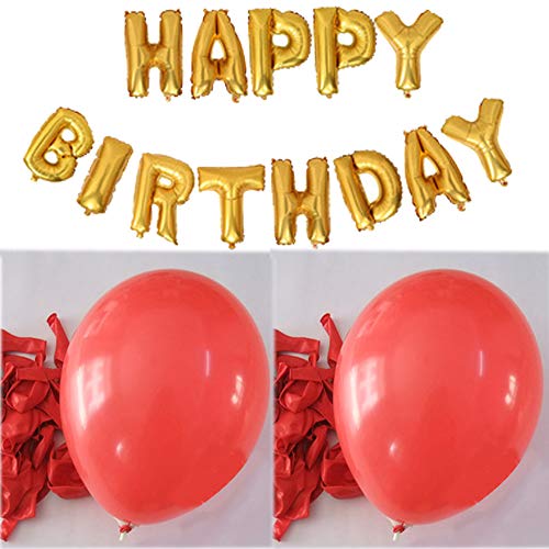 Evisha 50 pcs Red Pastel Colour 12" Balloons and 13 Letter 16" Golden Happy Birthday Aluminium Foil Balloons