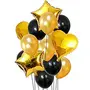 Evisha 6 Pcs Golden Star Foil and 50 Pcs Golden Black Latex Metallic Balloons