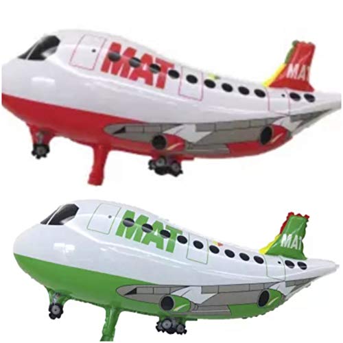 Size:Pack of 2 | Color:Red + Green2pcs aeroplane shaped round about 33" pvc balloons can be hung for around the globe theme or airplane theme Brthday parties. Easy enough to inflate yourself with a regular drinking straw or have them professionally inflated with helium if you need them to float! These balloons can be filled with helium or air. It can float in air only if filled with helium. Please inflate the gass slowly until 90% filled and keep away from fire.