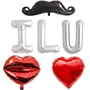 Masti Zone Balloons With Letter Foil Balloons - I, L, U + 1 Red Heart + 1 Mustache