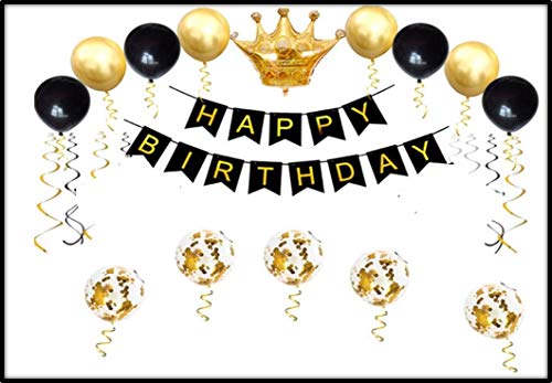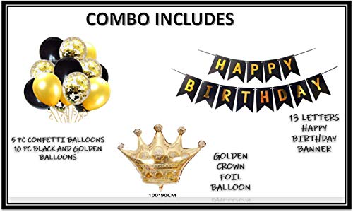 Color:COMBO 2Happy Brthday Combo includes Black Happy Brthday Banner + 20 Black And Golden Balloons + 5 Golden Confetti Balloons + 1 XL Crown Foil Balloons