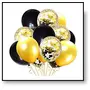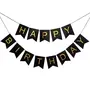 Black Happy Brthday Banner + 20 Black and Golden Balloons + 5 Golden Confetti Balloons + 1 XL Crown