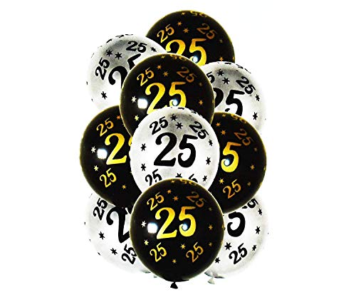 25th Anniversary / Brthday Balloons for Decoration - Black & Silver Pack of 10