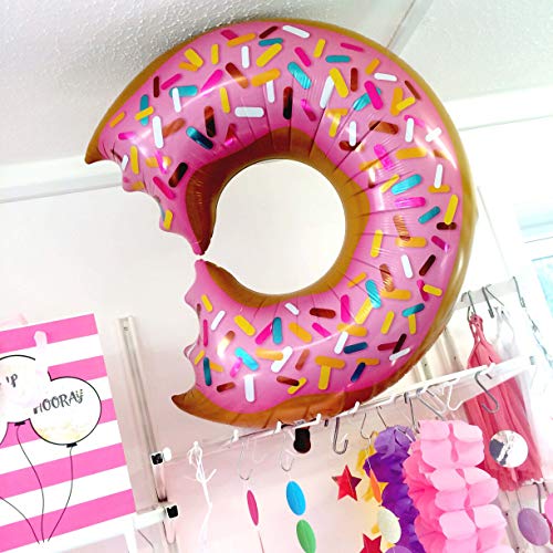 Brthday donut shape foil balloon - 28 inches This balloon includes a self-sealing valve preventing the gass from escaping after it's inflated. The balloon can be inflated with helium to float or with a balloon air inflator.