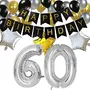 Brthday Party Kit-Black Banner Silver Number Balloon - 16" Black Gold & Silver Latex Balloon - 51 & 2 Silver 1 Gold Star Foil Balloon (60 Yrs)