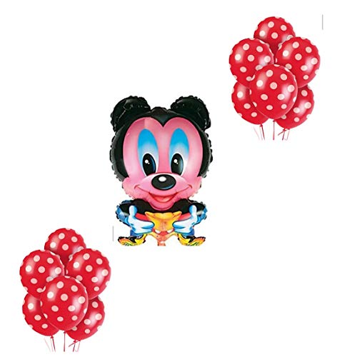 Cartoon Characters with Latex Balloons Combo (Pack of (2+10) Mickey Mouse + red Polka) for Disney Theme Brthday Party Decorations