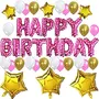 Color:PinkParty HubCute Brthday Party Decorations Set - Rose Happy Brthday Balloon Letters Banner 6 pcs Gold Mylar Foil Star 21pcs Latex BalloonsSweet Pink Brthday Party Supplies for girls