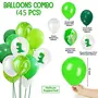 1pc Happy Brthday banner 1Pcs big size 36" dino green colour foil balloon 3Pcs dinosaurs tattoo for KDs 11pcs cup cake toppers 5Pcs big size green leaves 45Pcs Light green dark green white and printed latex baloon 1pc arc and 1pc glue dot This is an exclusive Brth day decorating kit for the first Brth day half bdaysecond 2nd birrhday 3rd birhday girl boy or KDs dinosaurs safari jungle theme parties.Excellent Choice - Most of b like dinosaurs party jurassic styles party. A complete dinosaur party set with banner balloons with leaves tattoo cake toppers can satisfy the entire party event at one time and the b can have an exciting and memorable jungle dinosaur Brthday party.Boys or girls and any age kid just love this set and the dino balloon included in this packet. This set materials is perfect to setup a great backdrop for your Small toddler or kid bday party.Excellent Choice - Most of b like dinosaurs party jurassic styles party. A complete dinosaur party set with banner balloons with leaves tattoo cake toppers can satisfy the entire party event at one time and the b can have an exciting and memorable jungle dinosaur Brthday party.Boys or girls and any age kid just love this set and the dino balloon included in this packet. This set materials is perfect to setup a great backdrop for your Small toddler or kid bday party.You get what you see: Our 1st picture of the combo set describes exactly the same of how our product will look like. It looks same and your guests or any family member will totally love them. This dinosaur set will surely be one of the best decoration for your jungle or dinosaur lover kid. KDs can just put tatoos and get some nice pictures clicked which you can definately relish throughout your life time.PREMIUM PARTY SUPPLIESNothing is worst than seeing your balloons deflate or pop before/during your party.