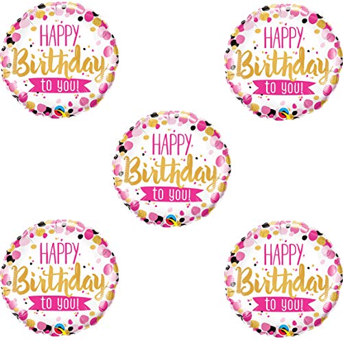 Fancy Shape foil Balloons (Pack of 5 Round HBD Pink)